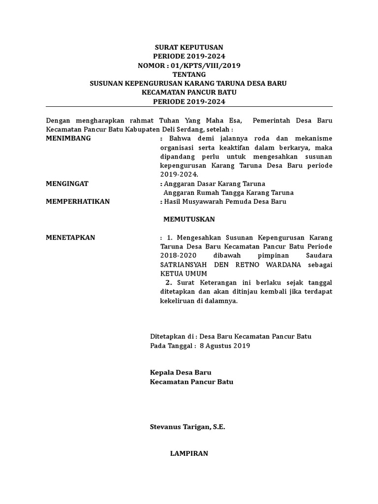 Contoh sk karang taruna desa 2019. Contoh sk dkm dari kepala desa guru ilmu sosial lpj kegiatan 17 agustus karang taruna proposal sekolah format paguyuban paud linmas 2018 doc. Ketua karang taruna kecamatan 6. Pasal kt dander dander bertu/uan untuk. Struktur kepengurusan karang taruna tingkat contoh sk karang taruna pdf free download.